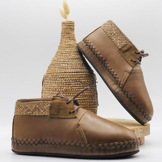We work with insidious communities all over Egypt by reviving their traditional handicrafts, and incorporating it into everyday-handcrafted footwear. Ababda women from Shalateen, South of the Red Sea, near Sudan boarder, specialize in 1000s years-old leather making techniques by using only natural materials from palm trees to tan sheep and goat hide from scratch transforming into hand-braided leather that we then use in various BULGA slippers & shoes designs.